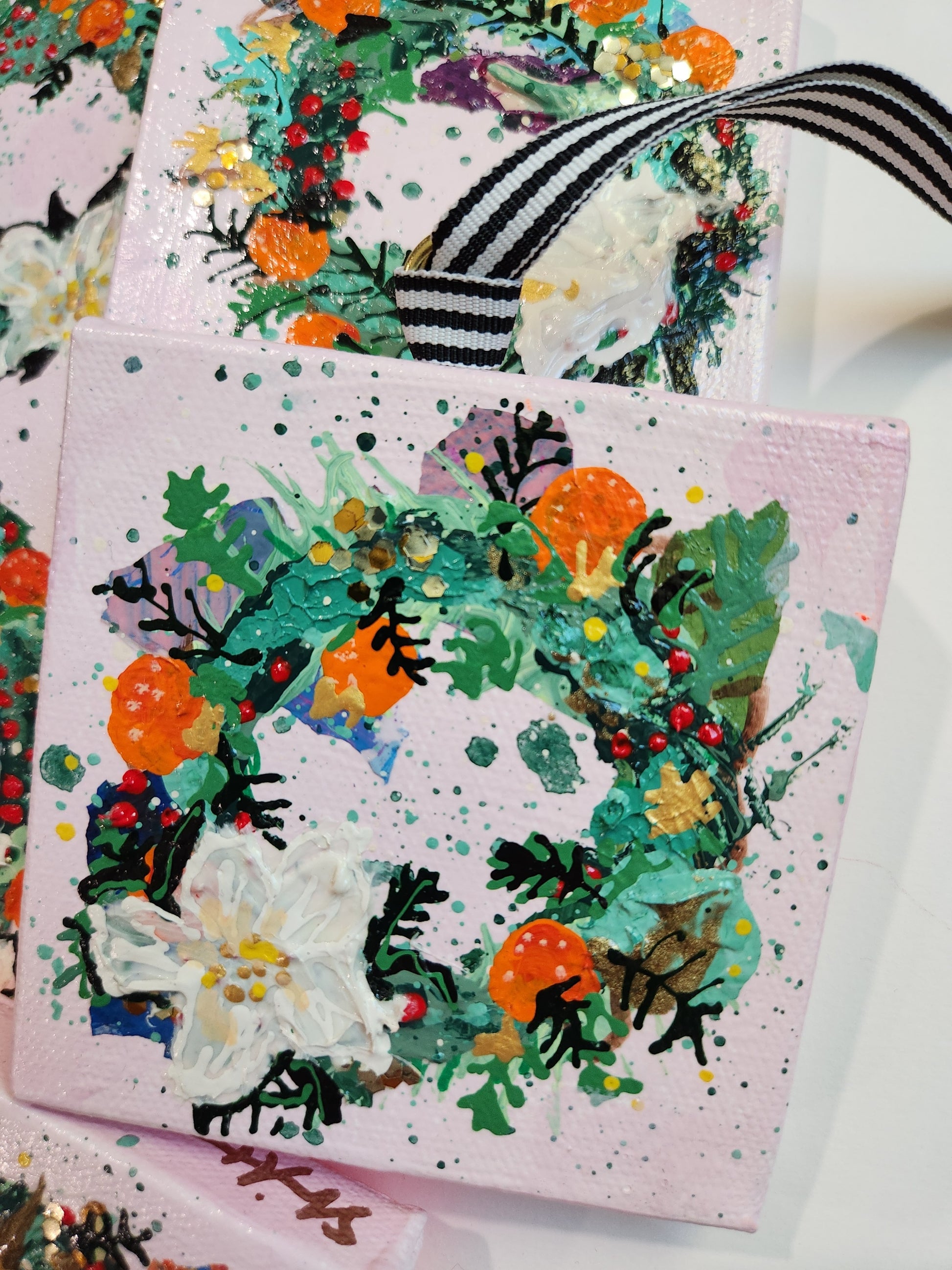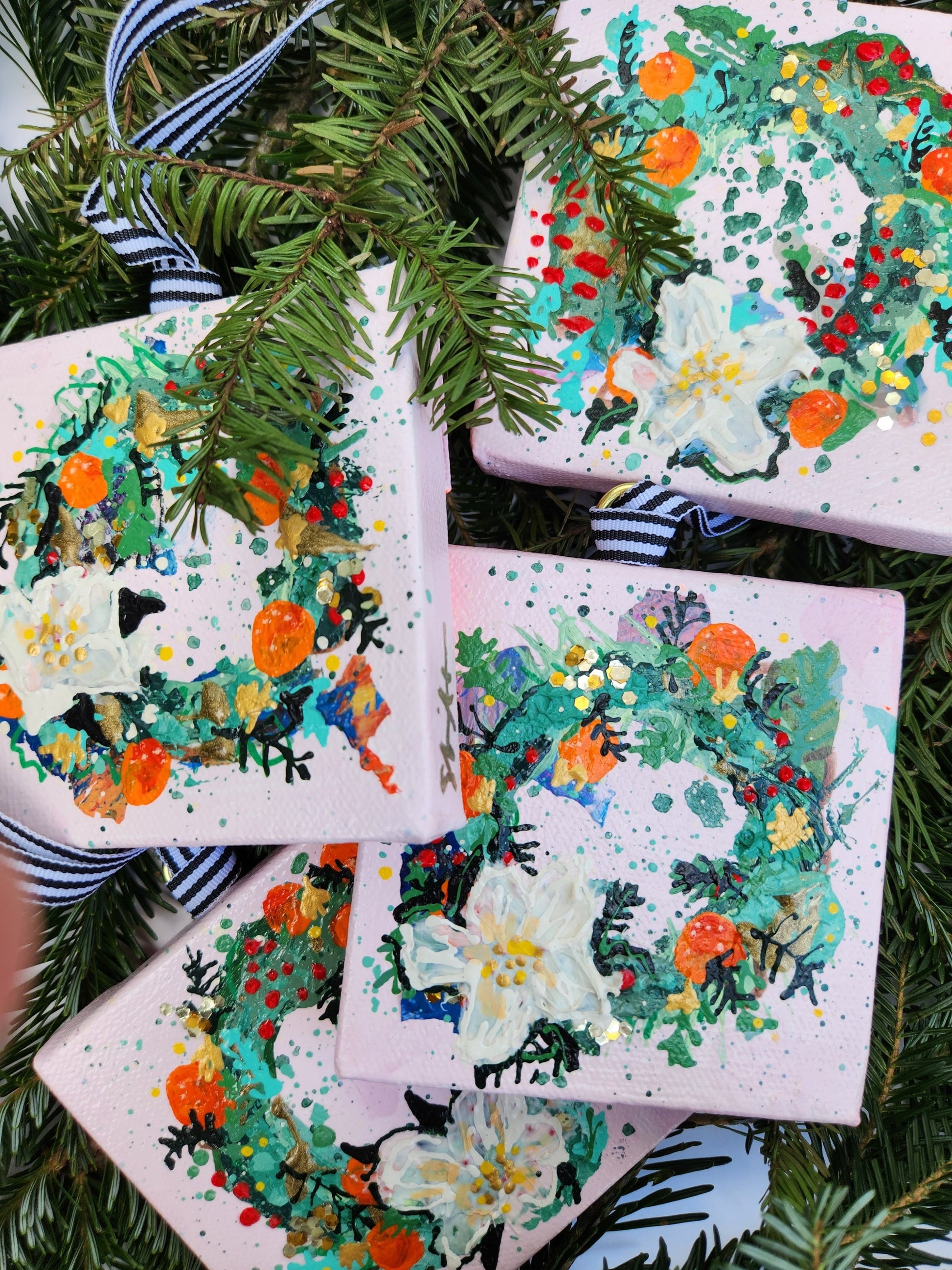 These wreaths have oranges on them because I love how oranges are one of the fruits that is at it's peak season during winter. It's a bright spot when the days are shorter. They also refer back to the Oranges/Sardines collection I made this year and gave me a pathway to keep going on that kick. I added in a single magnolia to each one as a focal point. As one of the earliest flowering plants, magnolias symbolize enduring strength and the ability to "stand the test of time".