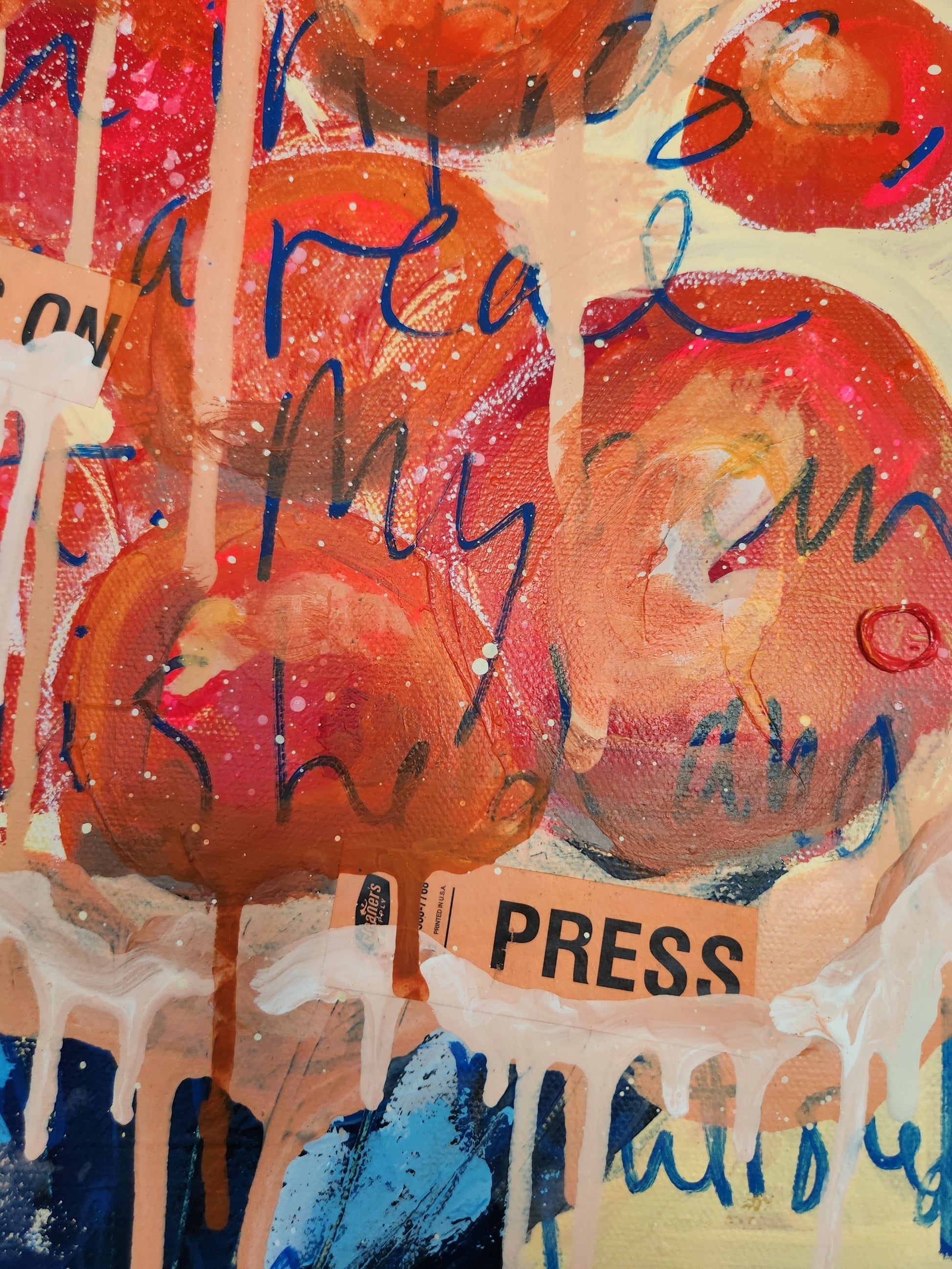 "Press on" – the tags from the dry cleaners cut from saying "press only" connect with me very directly in these times. These times as the country and world speeds toward fascism. How sad. Amie McNee says artists are the empathy muscle of society. SO, here I am coming to you to say press on, don't get resigned. Our small communities will be what saves us in this time, so keep your friendships up and gather together.