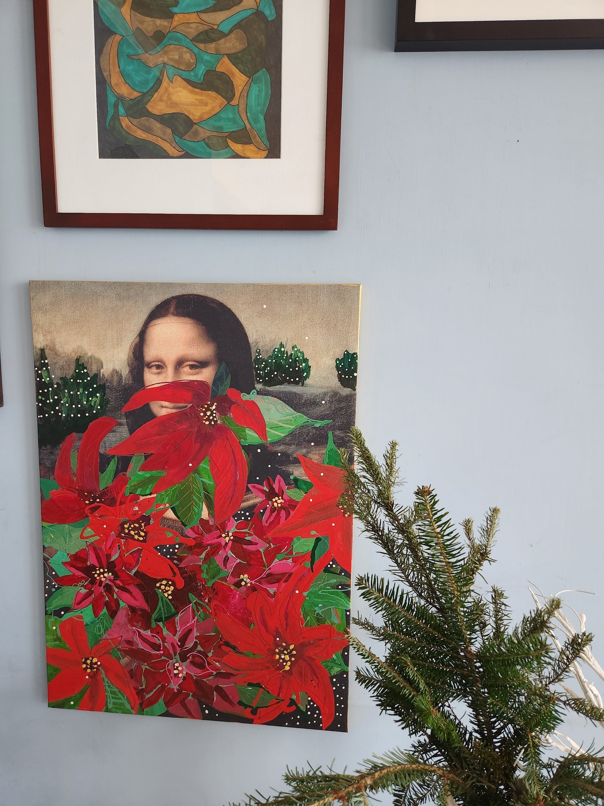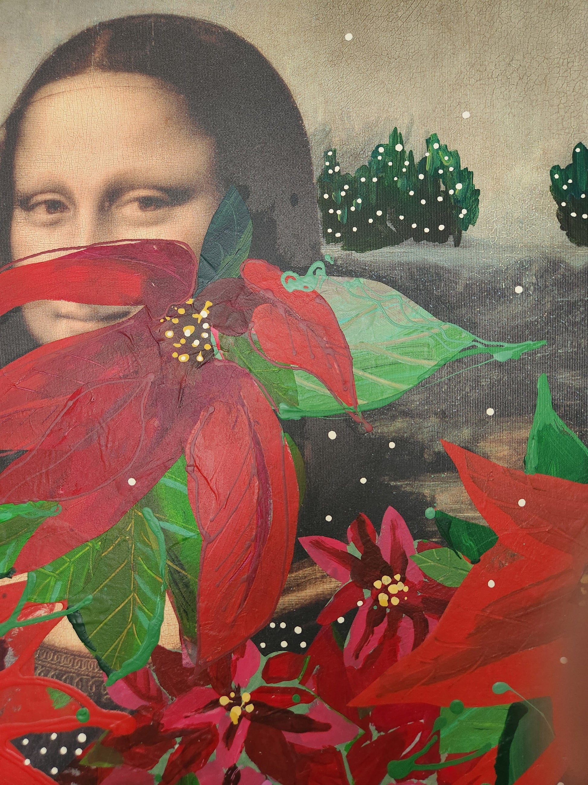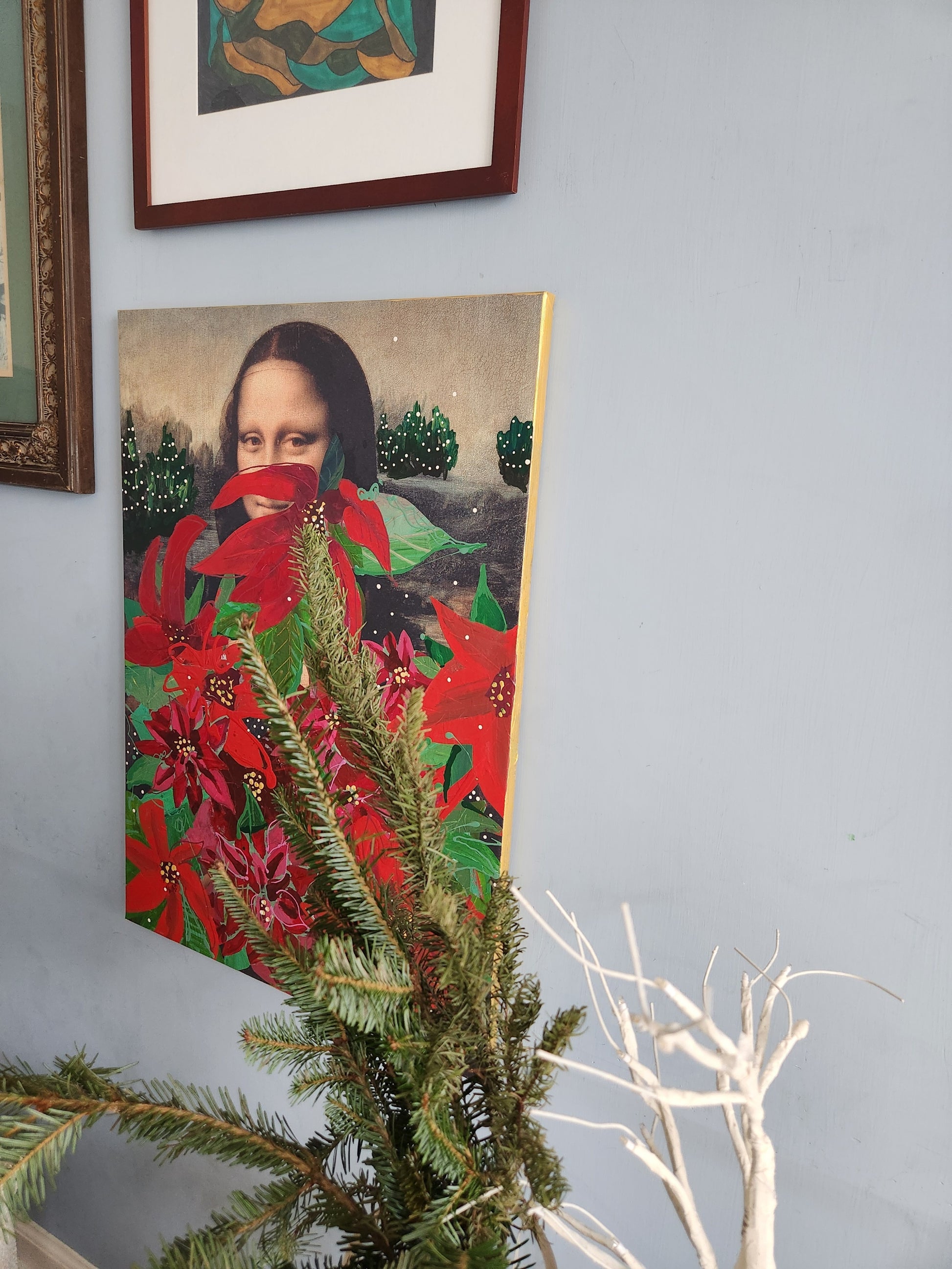 You will have years of fun with this as a holiday decoration. It is thin, so stores easily. As soon as you pull it out, it will be like BAM – Holidays Are Here! It has presence and the wonderful energy of original art and the iconic energy of the Mona Lisa.