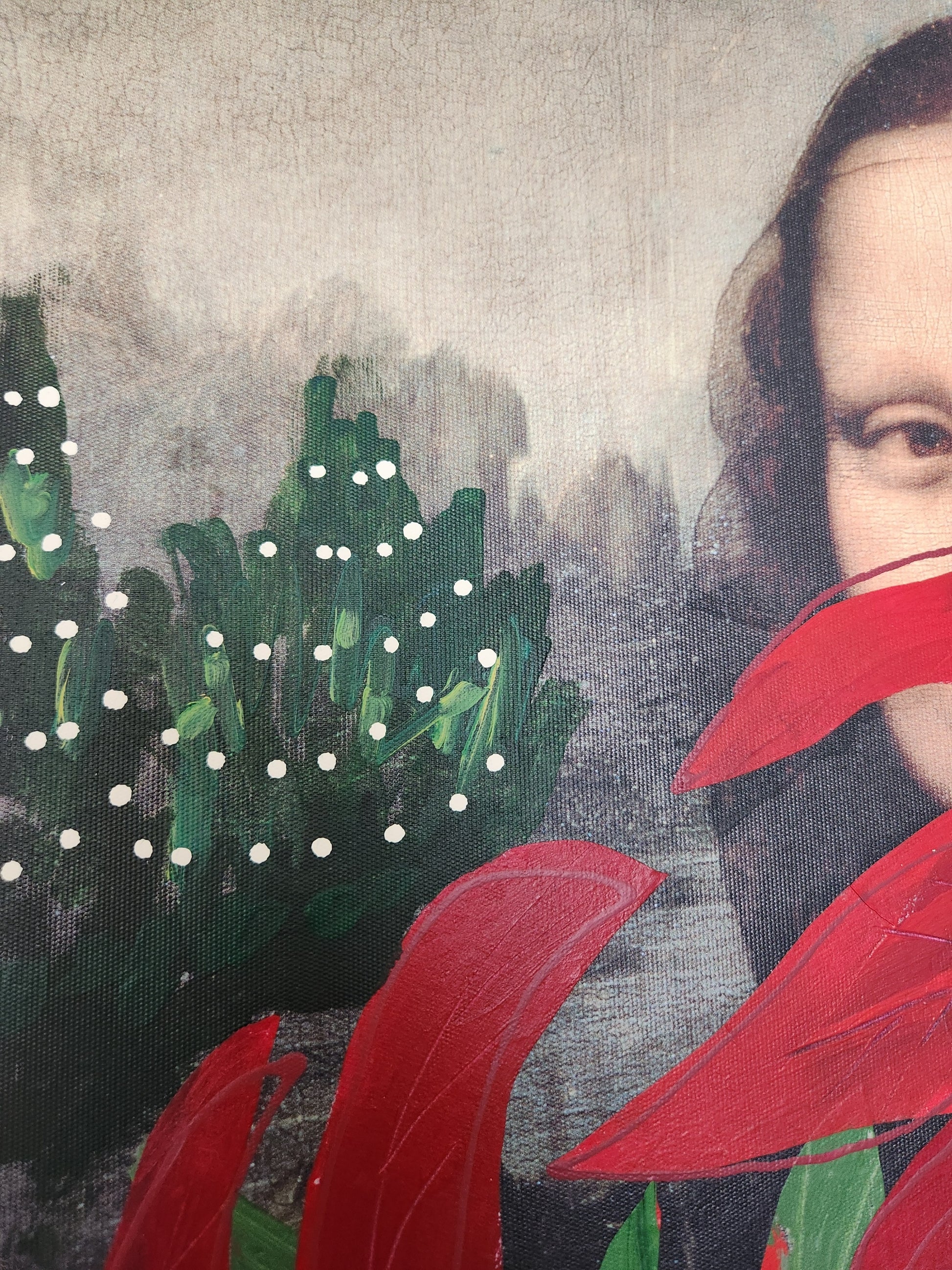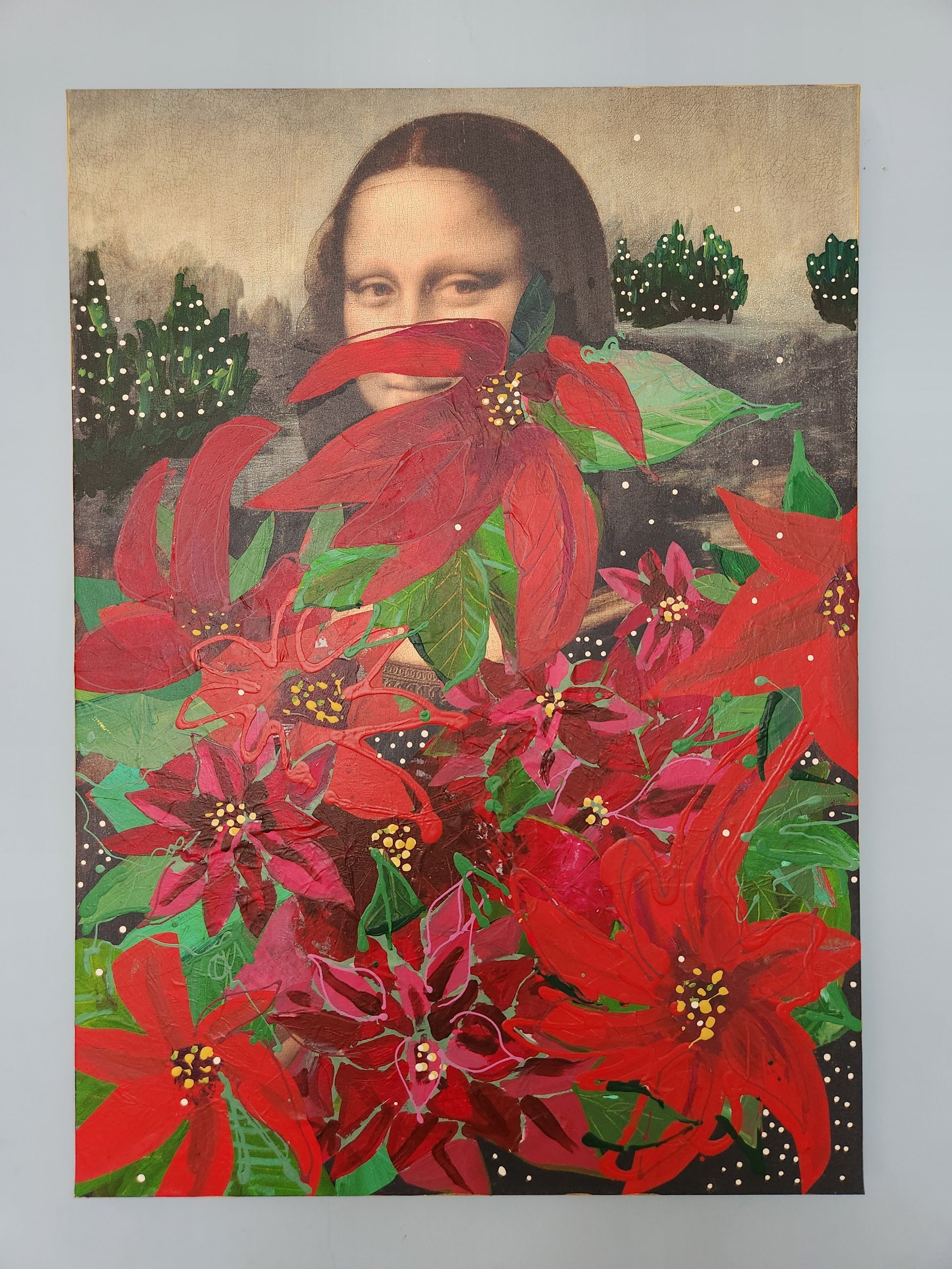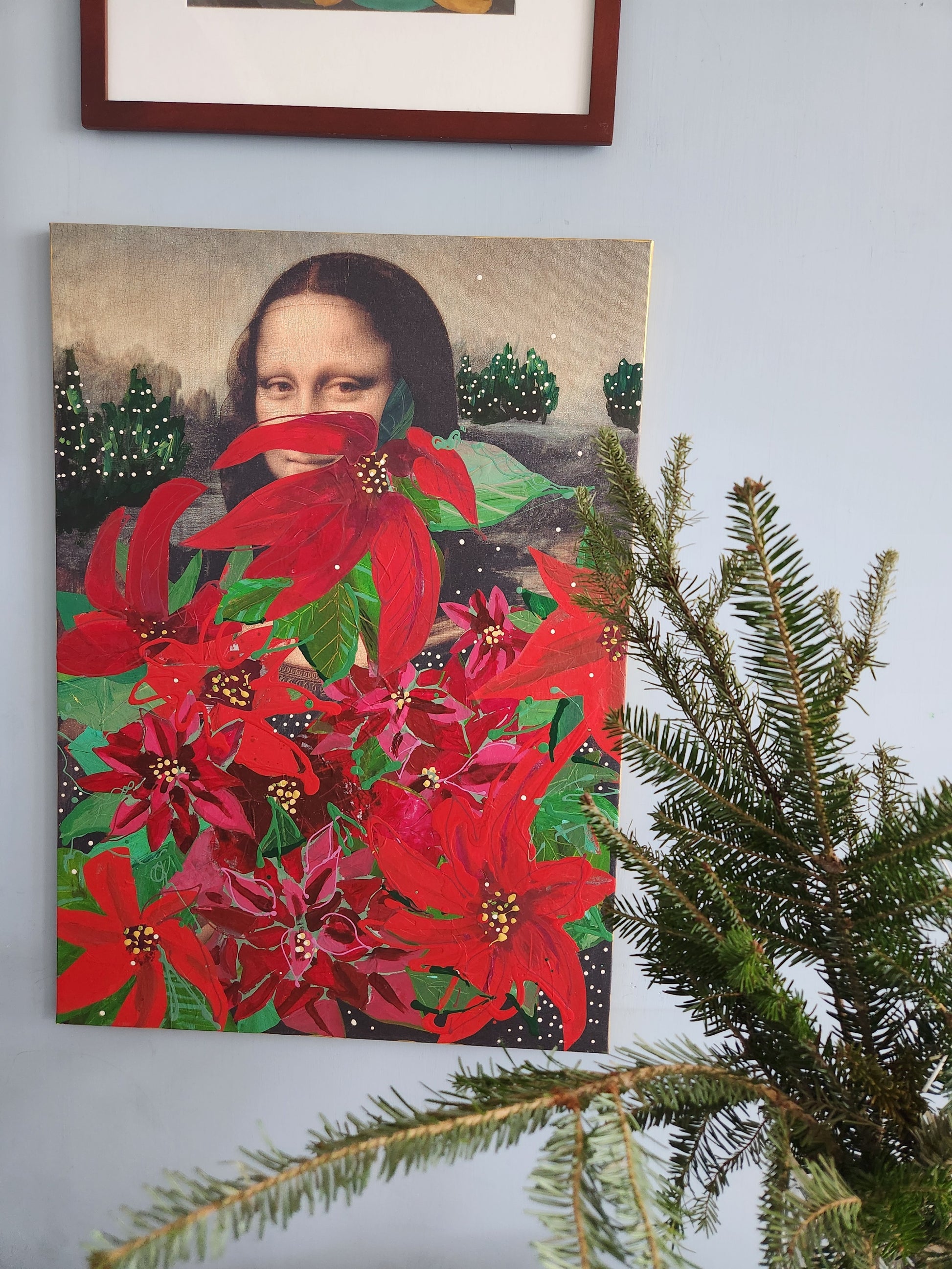 You will have years of fun with this as a holiday decoration. It is thin, so stores easily. As soon as you pull it out, it will be like BAM – Holidays Are Here! It has presence and the wonderful energy of original art and the iconic energy of the Mona Lisa.